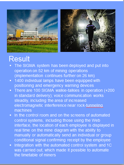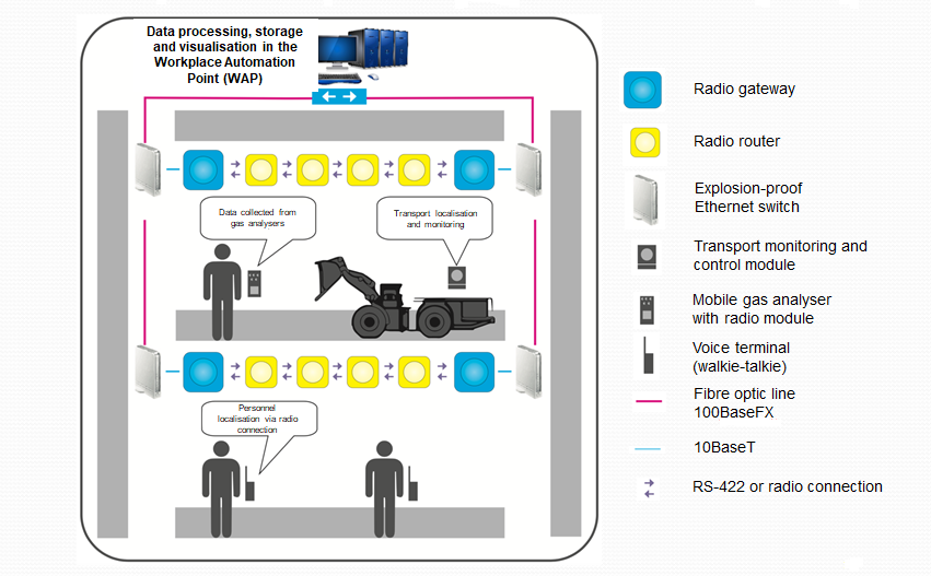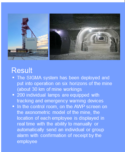 Locating (or tracking) module is assigned to a specific employee (for miners, for example, it is embedded in a headlamp)