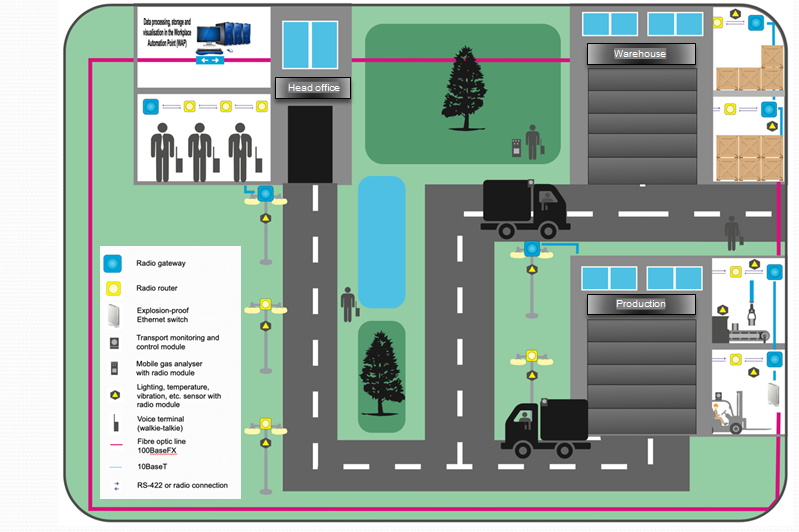 the location of personnel and mobile objects at production facilities